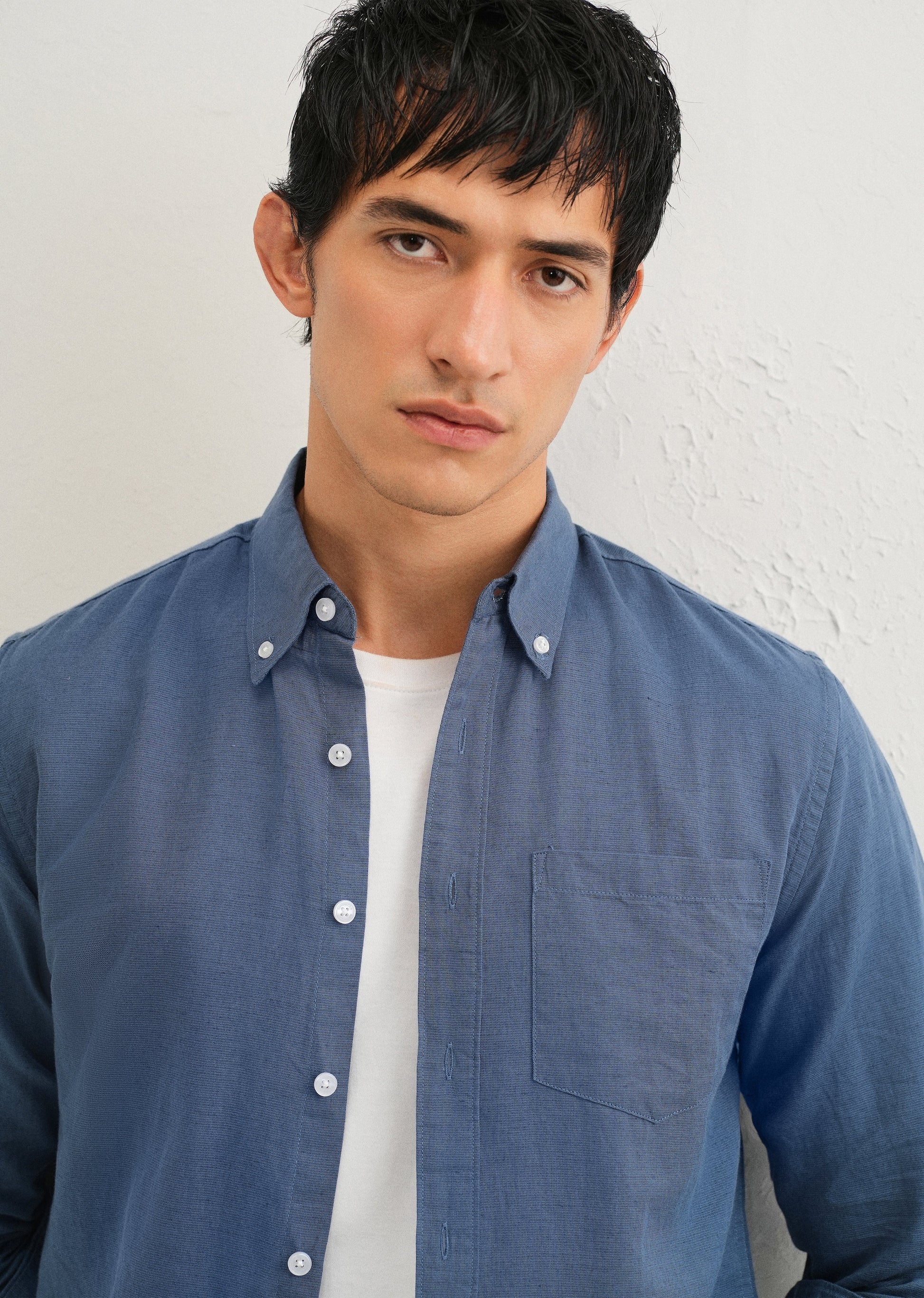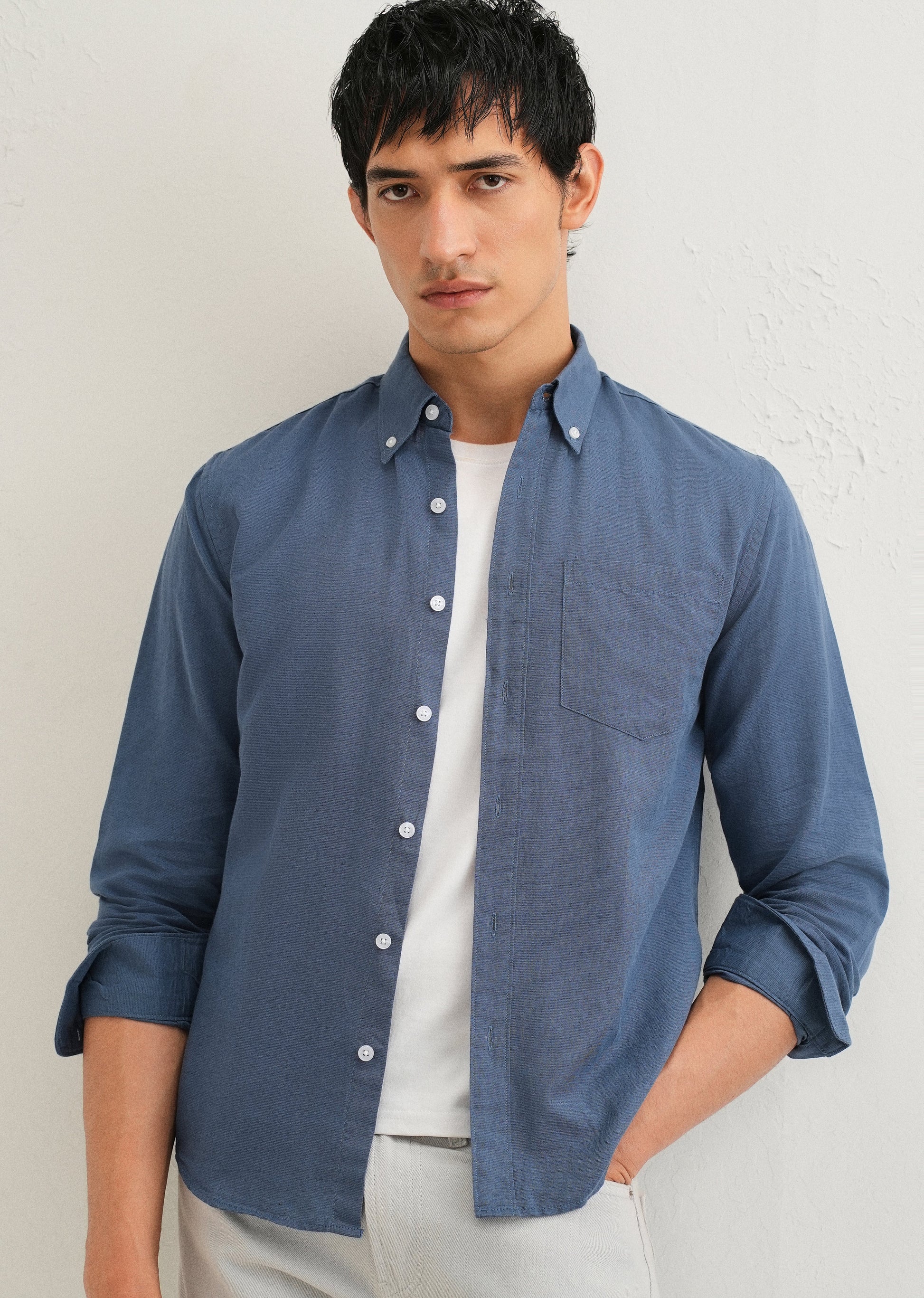 Crafted from a breathable cotton-linen blend, it’s perfect for any season, offering comfort and style in equal measure. A plain shirt built for work and beyond. Crisp, breathable, and easy to style, it keeps you looking sharp through long hours without compromising comfort. Available in a range of versatile colors, this shirt effortlessly enhances your everyday wardrobe.