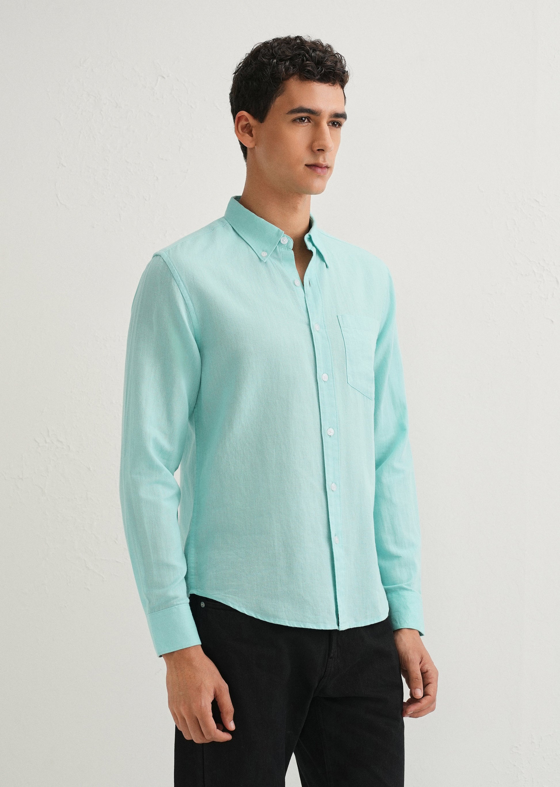 Crafted from a breathable cotton-linen blend, it’s perfect for any season, offering comfort and style in equal measure. A plain shirt built for work and beyond. Crisp, breathable, and easy to style, it keeps you looking sharp through long hours without compromising comfort. Available in a range of versatile colors, this shirt effortlessly enhances your everyday wardrobe.