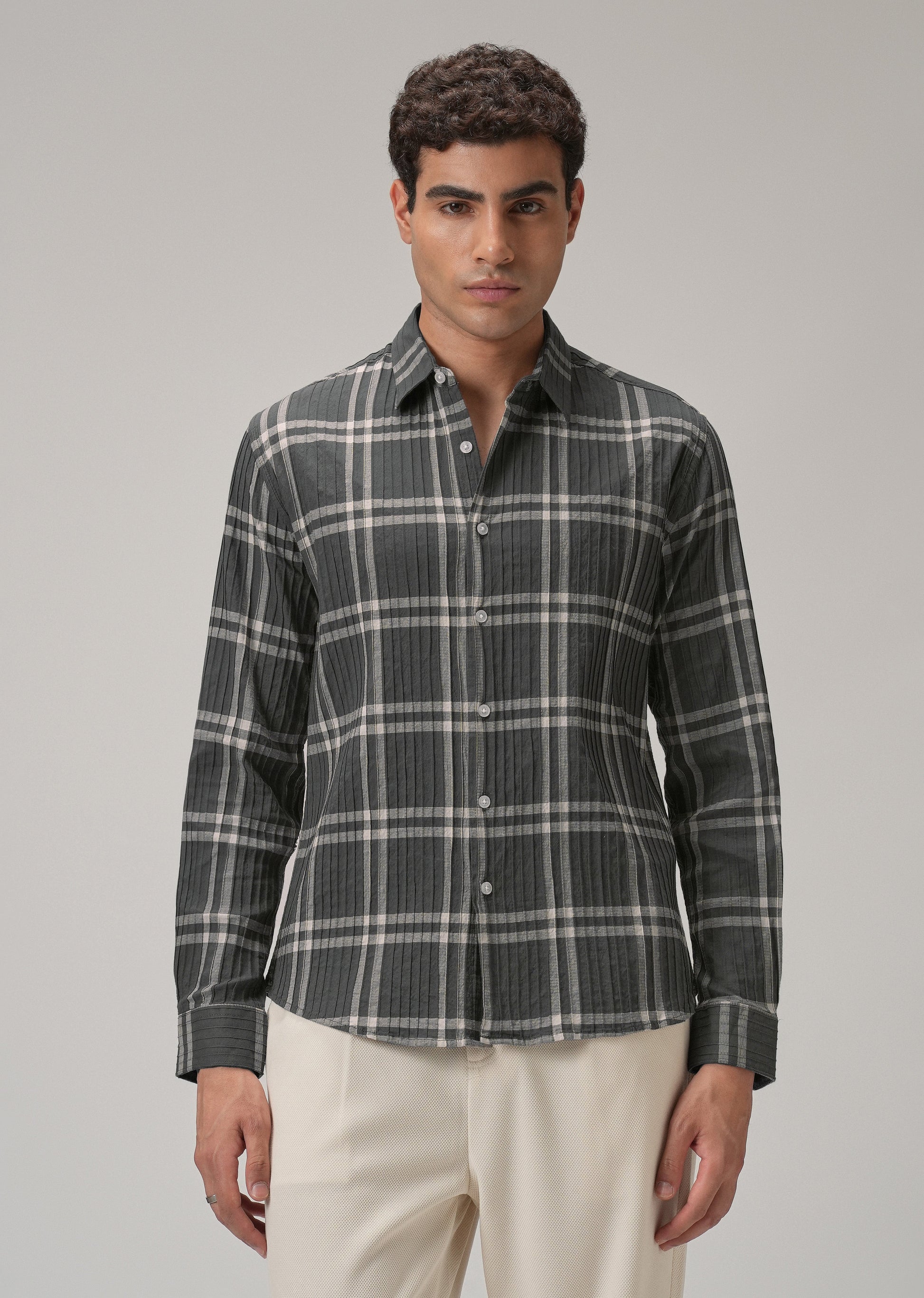 Lightweight, breathable, and effortlessly stylish. Crafted from 100% cotton, this shirt offers a sleek yet comfortable fit. The standard collar, button-up front, and long sleeves create a classic look, while the self-pleated fabric adds a subtle touch of texture.
