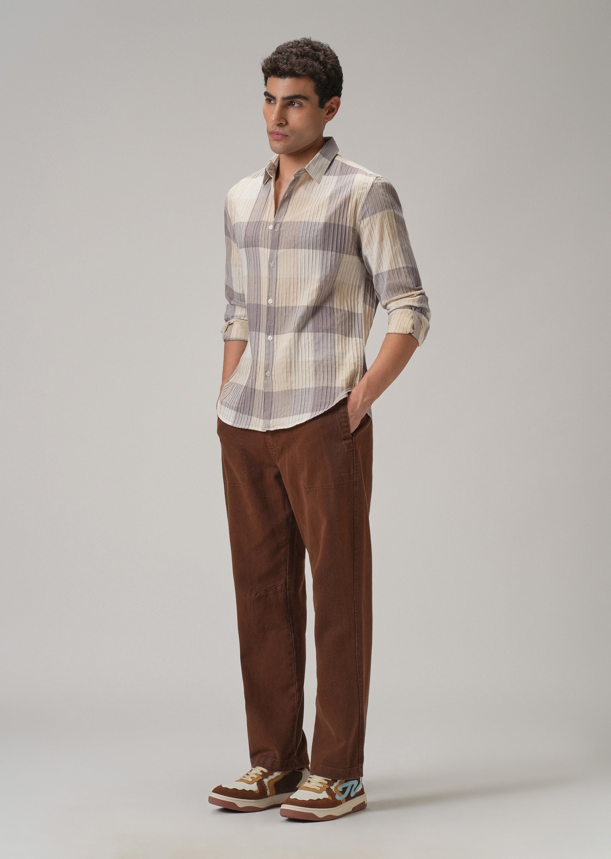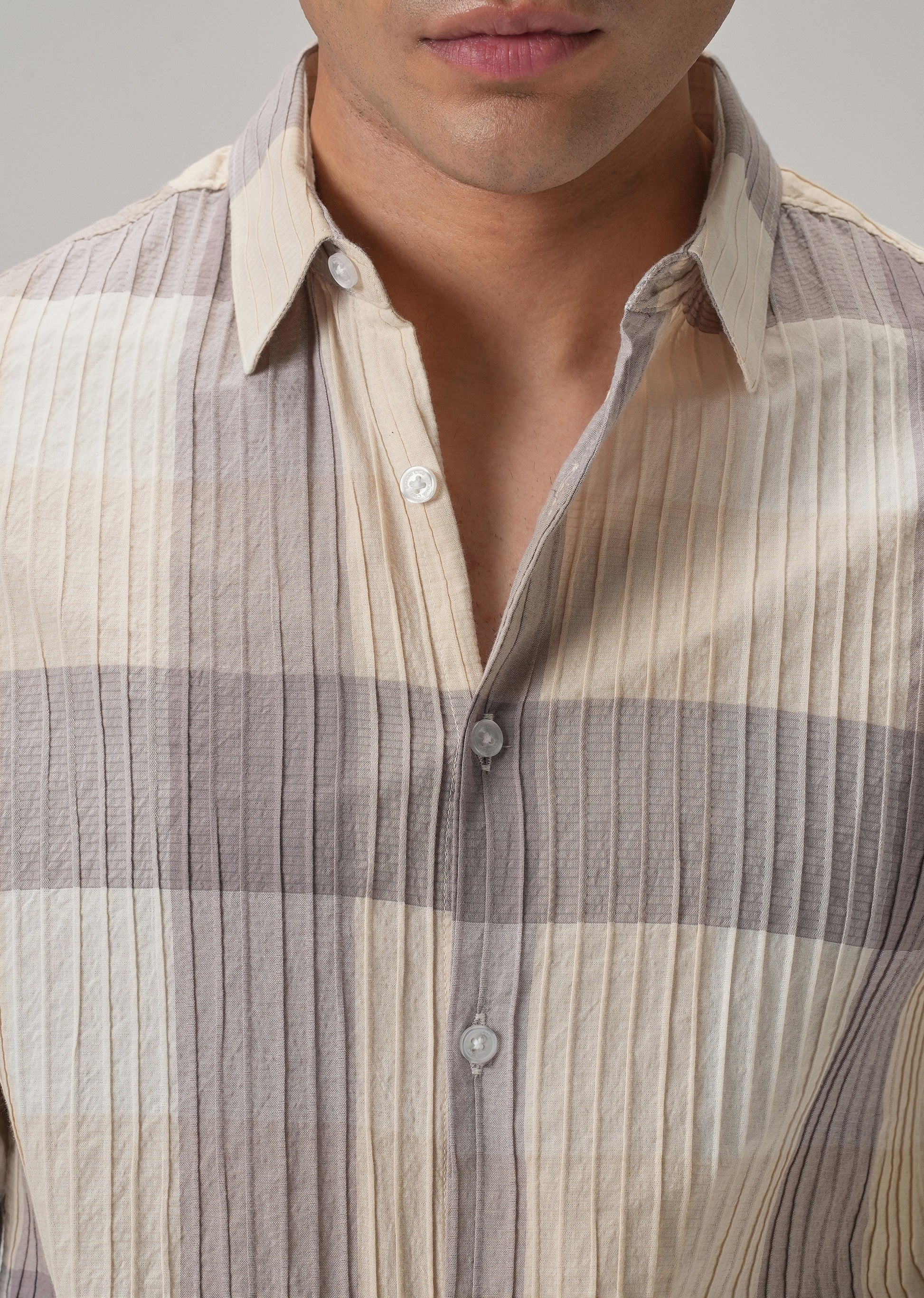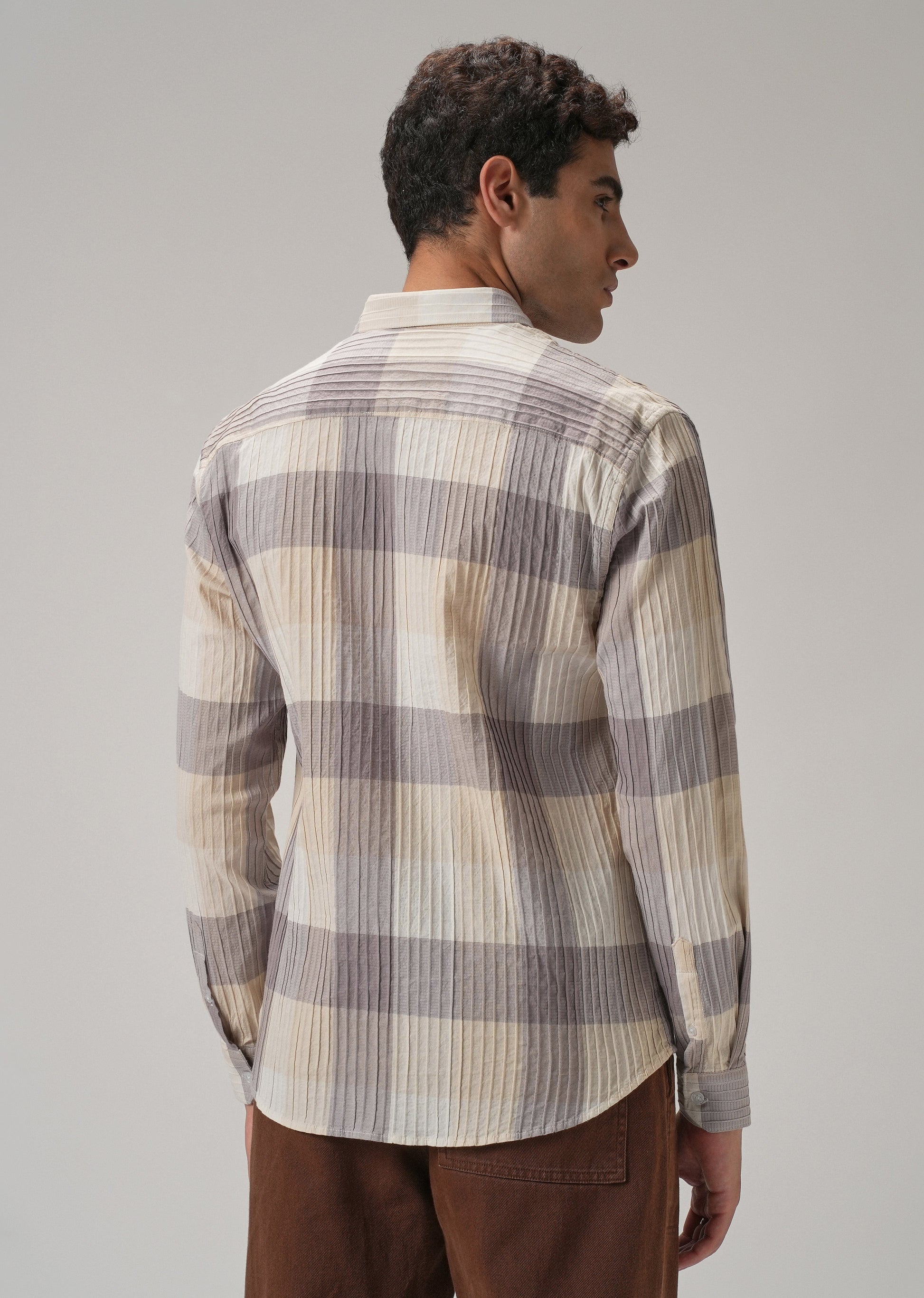 Lightweight, breathable, and effortlessly stylish. Crafted from 100% cotton, this shirt offers a sleek yet comfortable fit. The standard collar, button-up front, and long sleeves create a classic look, while the self-pleated fabric adds a subtle touch of texture.