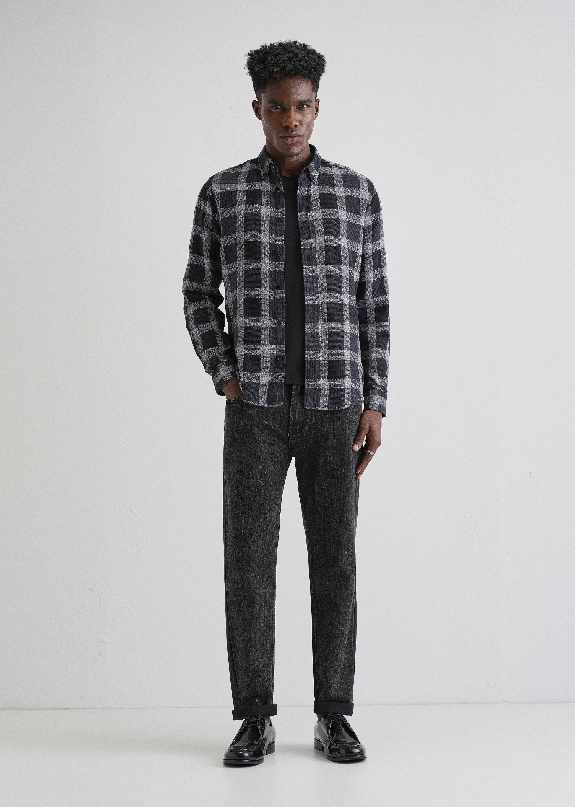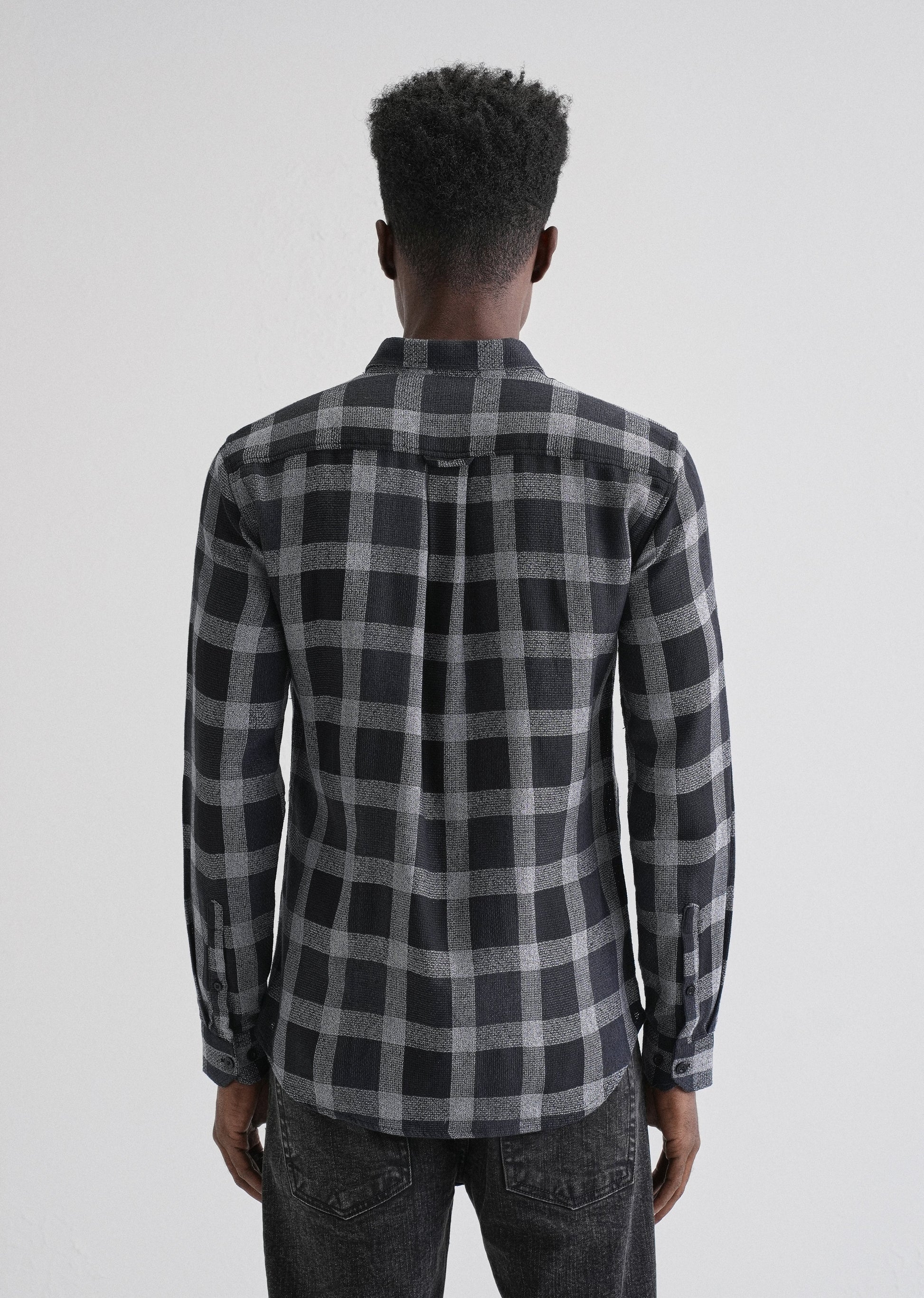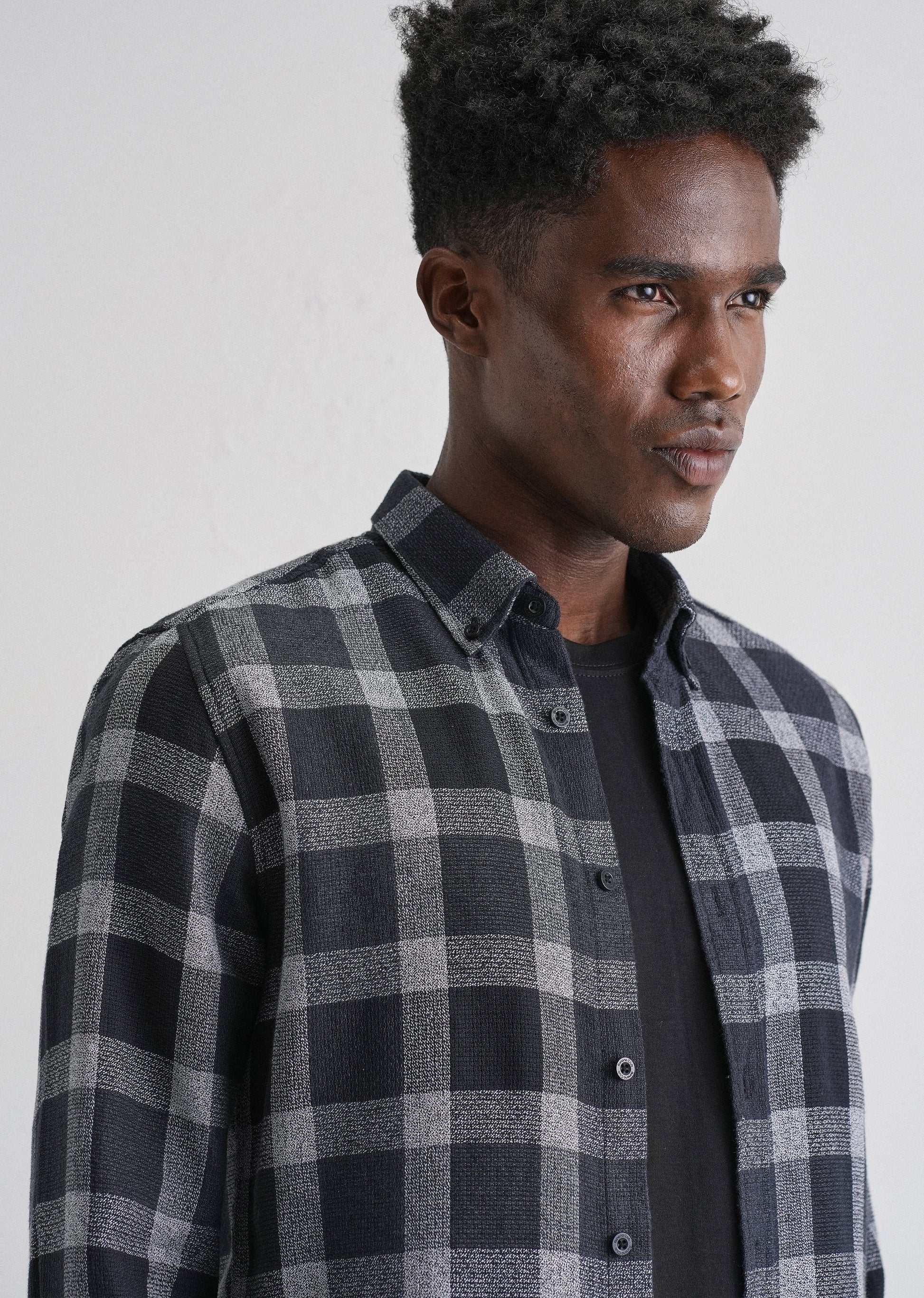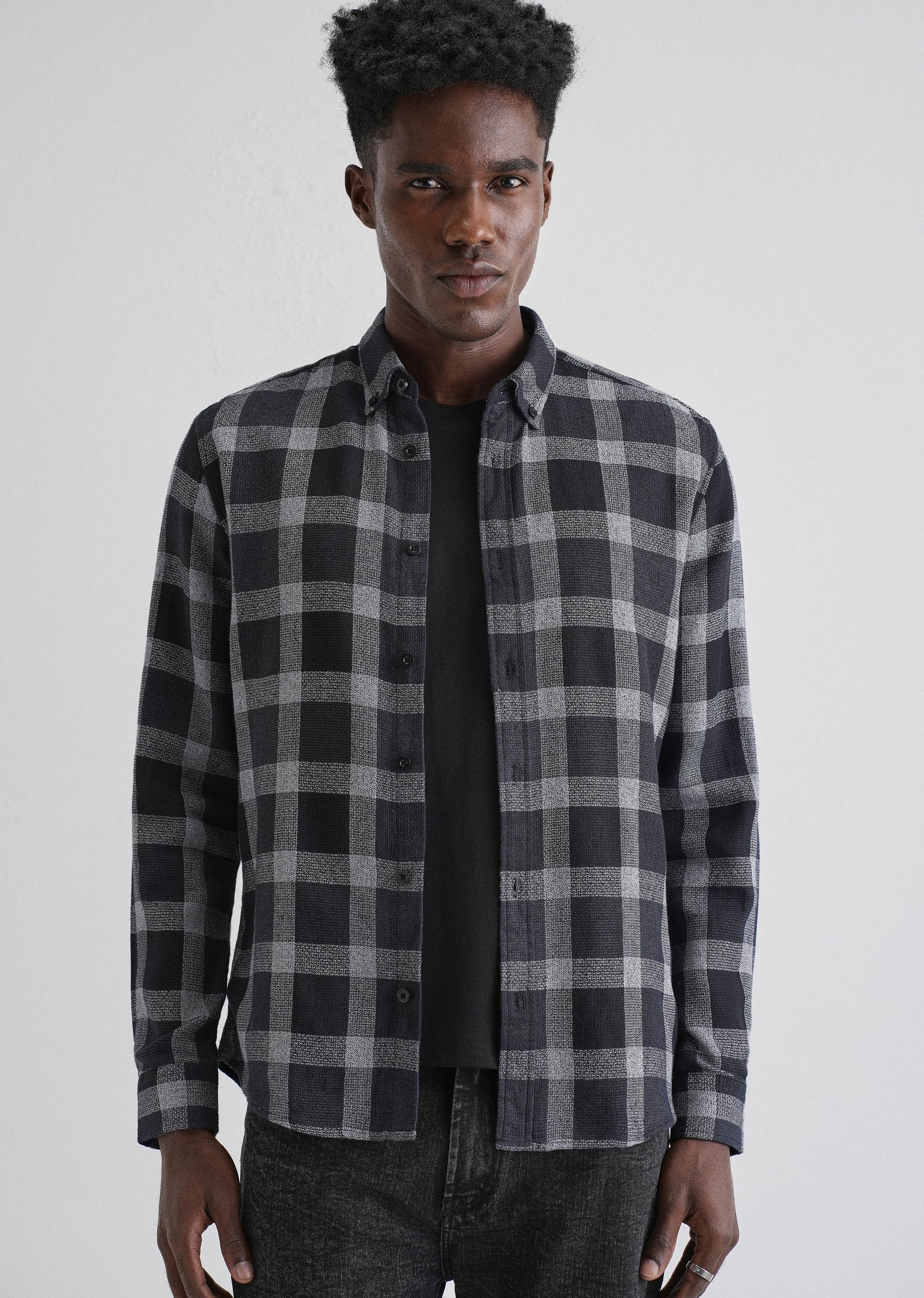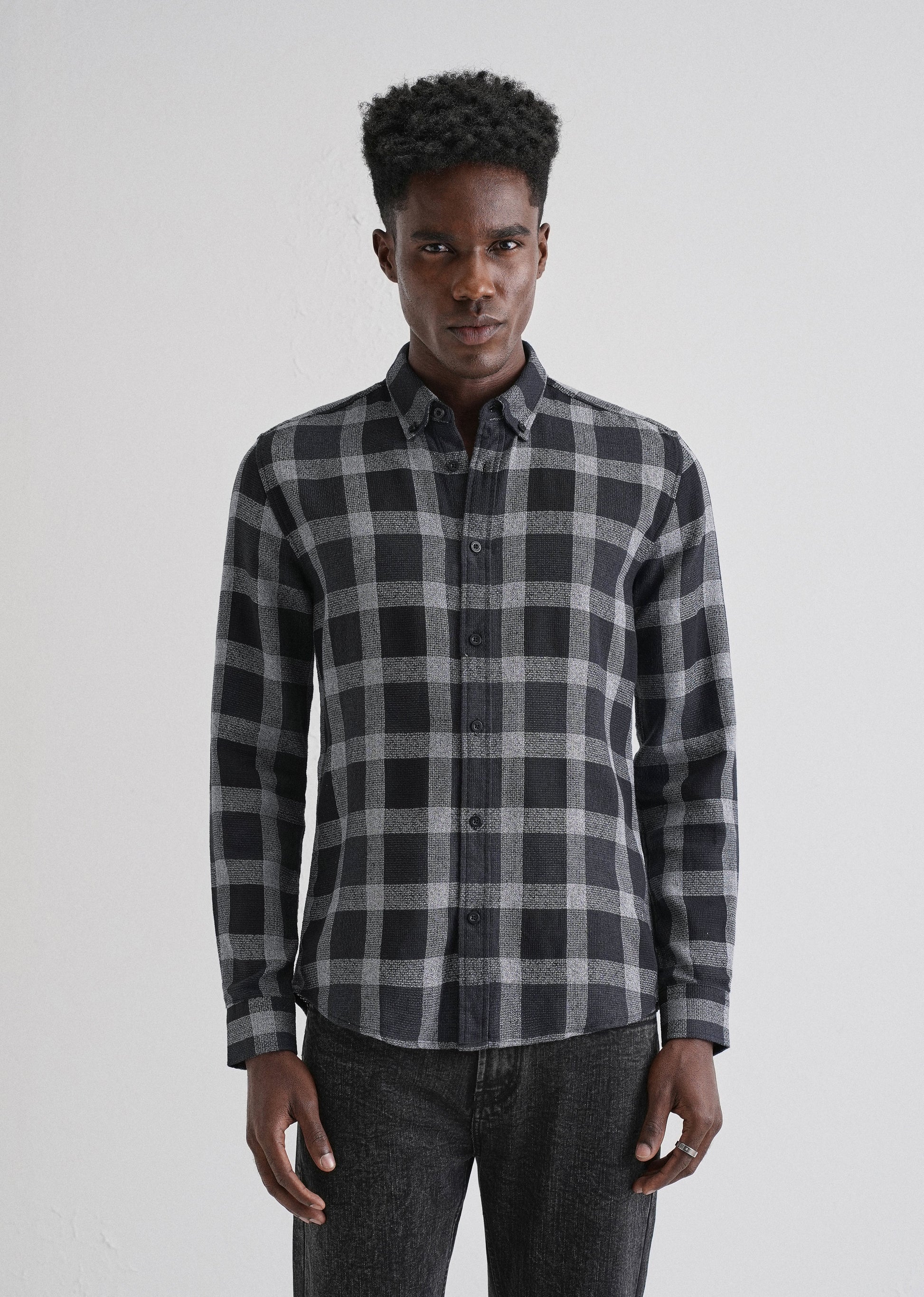 Melange Square Grid Black Check Shirt