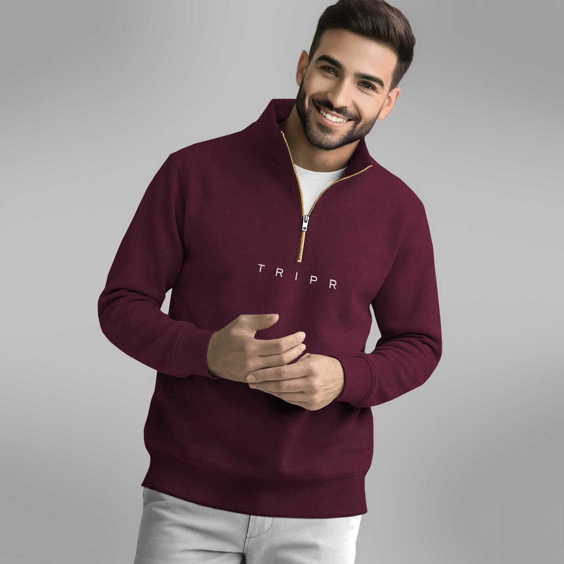 Men Full Sleeve High Neck Sweatshirt Maroon
