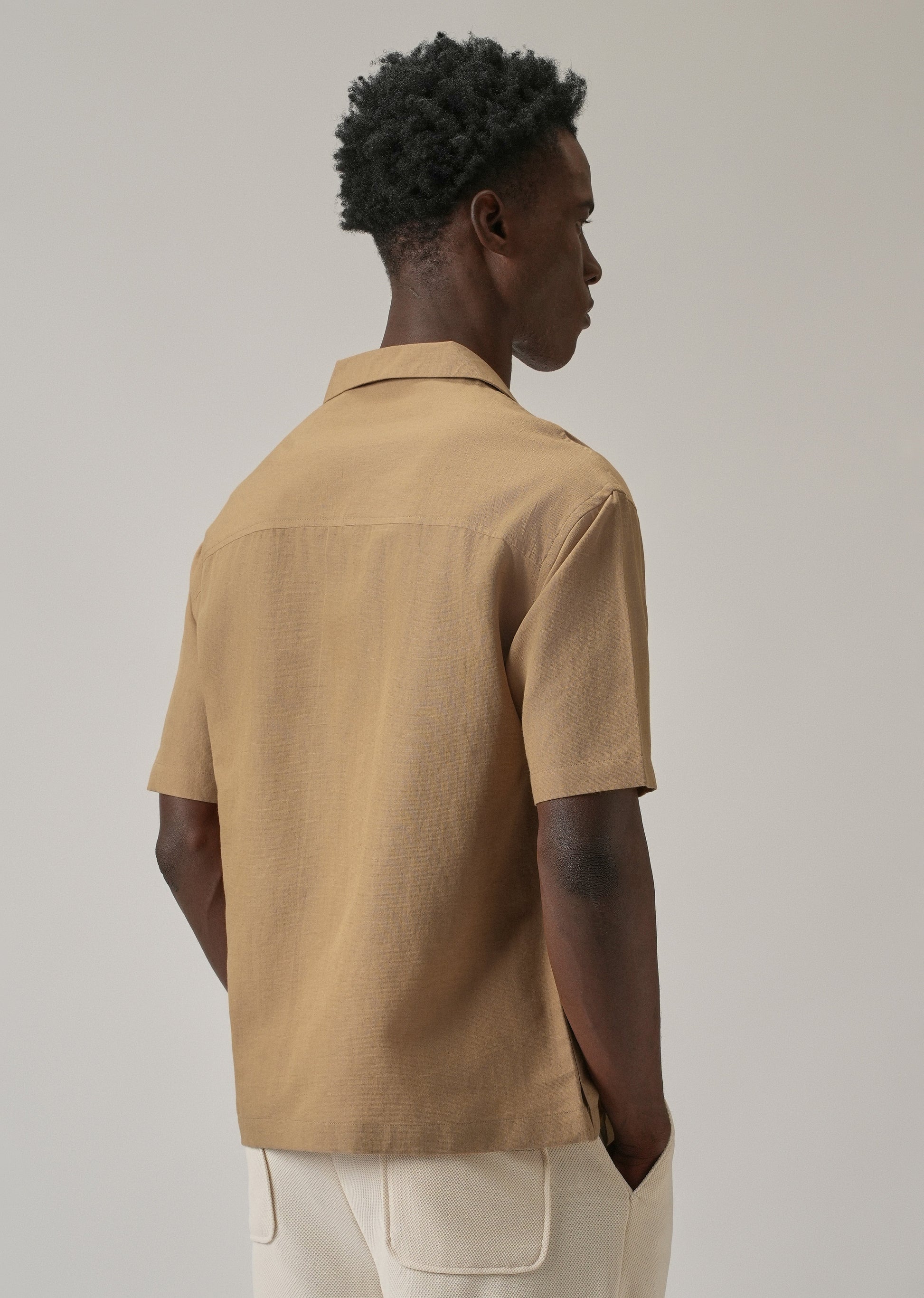 Elevated design with embroidery detailing. This shirt features embroidered details on the garment, adding a refined touch to a classic silhouette. The cuban collar, button-up front, while the regular fit ensures a sharp and tailored appearance.