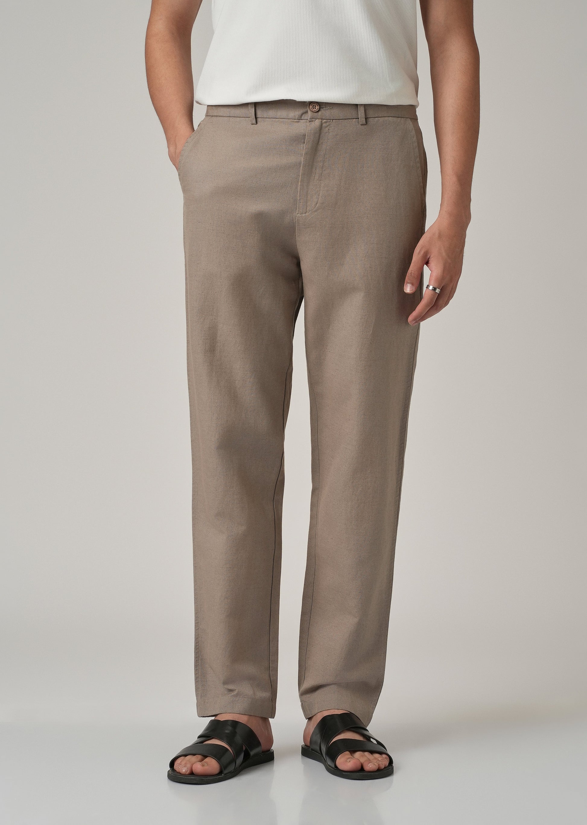 Tan Linen Relaxed Fit Trouser