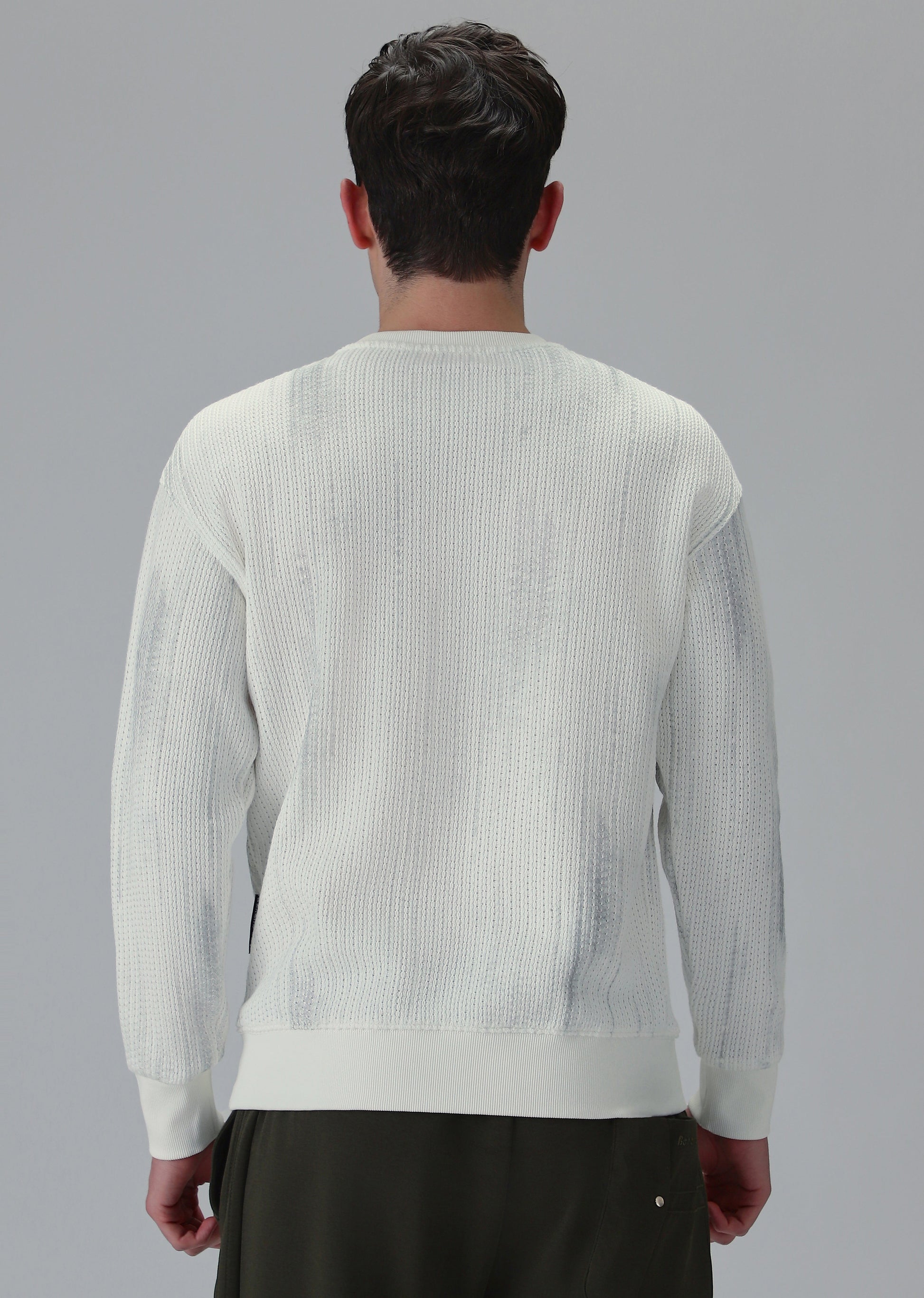 Textured Knit White Sweatshirt