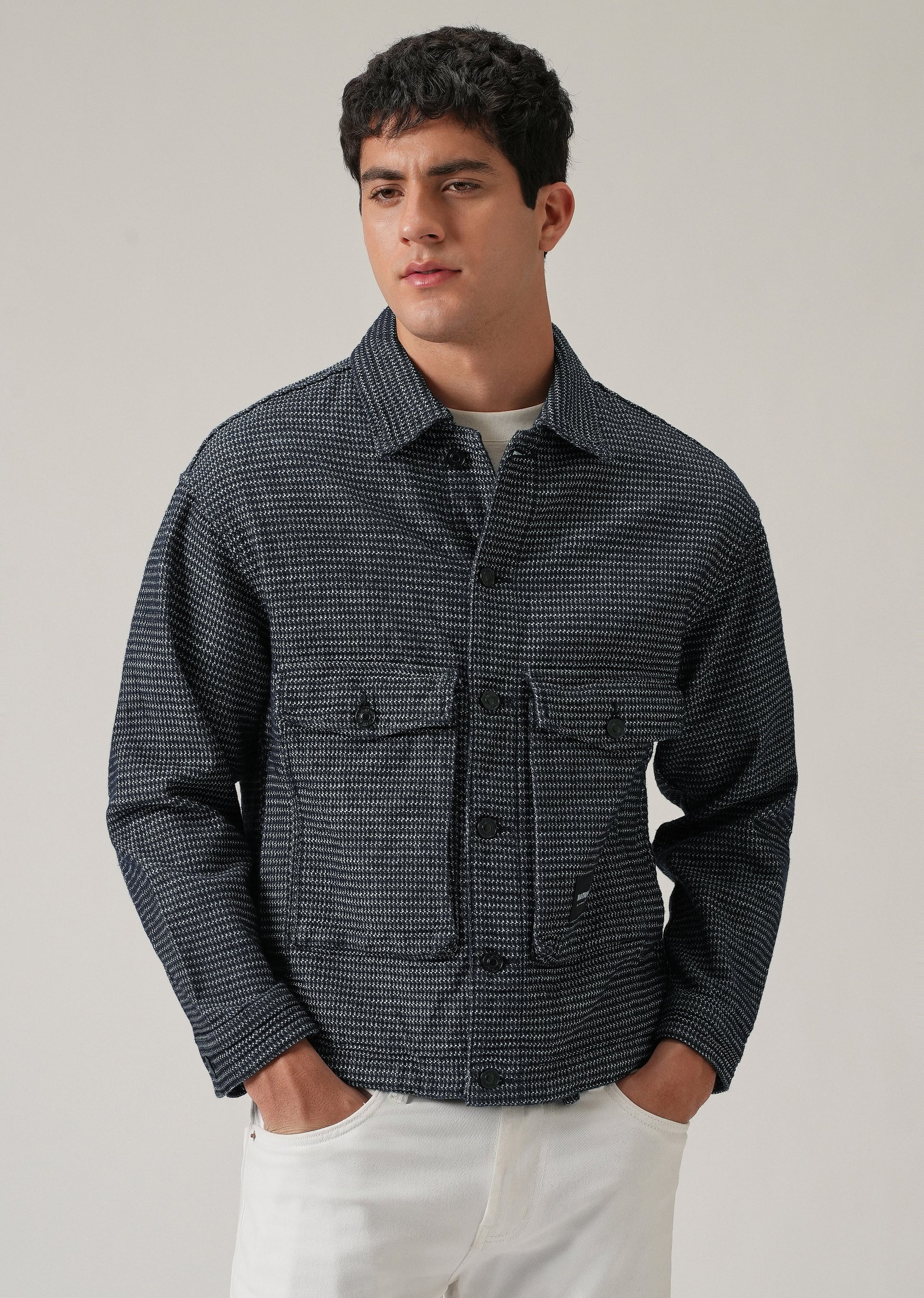 Designed for both style and comfort, this jacket is your new go-to layering piece. Crafted from premium Denim Jacquard fabric, it’s perfect for adding a touch of rugged charm to any outfit. With its classic button-up front and practical front pockets, it’s a versatile piece that works all year round.