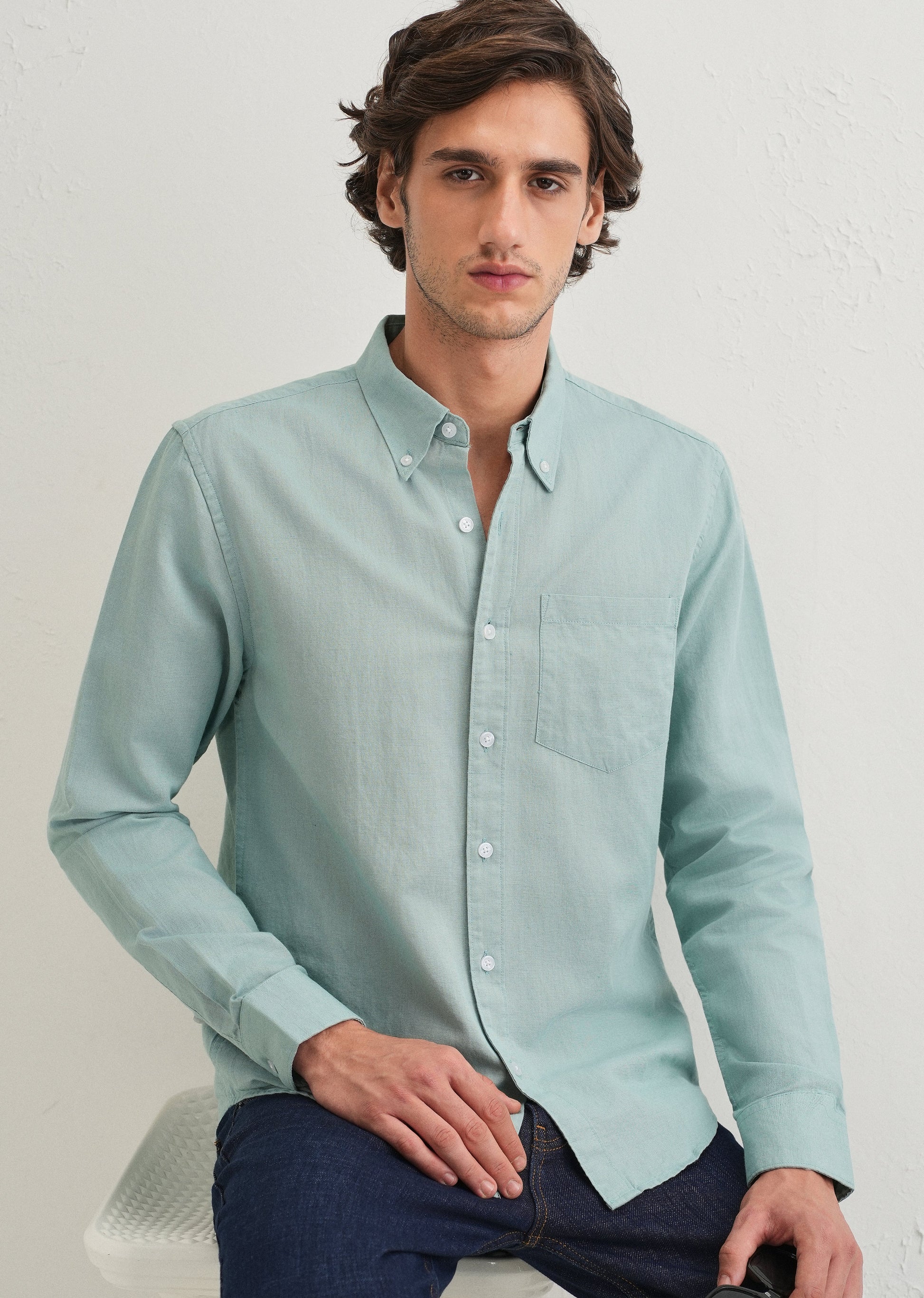 Crafted from a breathable cotton-linen blend, it’s perfect for any season, offering comfort and style in equal measure. A plain shirt built for work and beyond. Crisp, breathable, and easy to style, it keeps you looking sharp through long hours without compromising comfort. Available in a range of versatile colors, this shirt effortlessly enhances your everyday wardrobe.