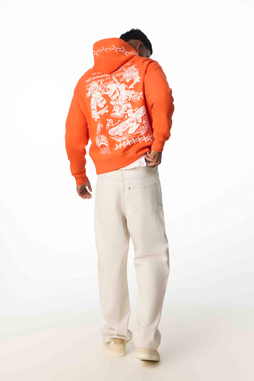Crafted from a premium cotton blend, the UMSB Manifesto Hoodie features a soft brushed fleece interior and a sturdy 380 gsm weight to keep you cozy through every grind. Raglan sleeves provide mobility, while ribbed cuffs and hem lock in warmth. The front pouch pocket is perfect for your essentials, and the cracked print effect paired with bold embroidery on the hood adds a rebellious edge. Printed with eco-friendly, non-PVC ink, this unisex hoodie is made right here in India, celebrating our craftsmanship and quality.