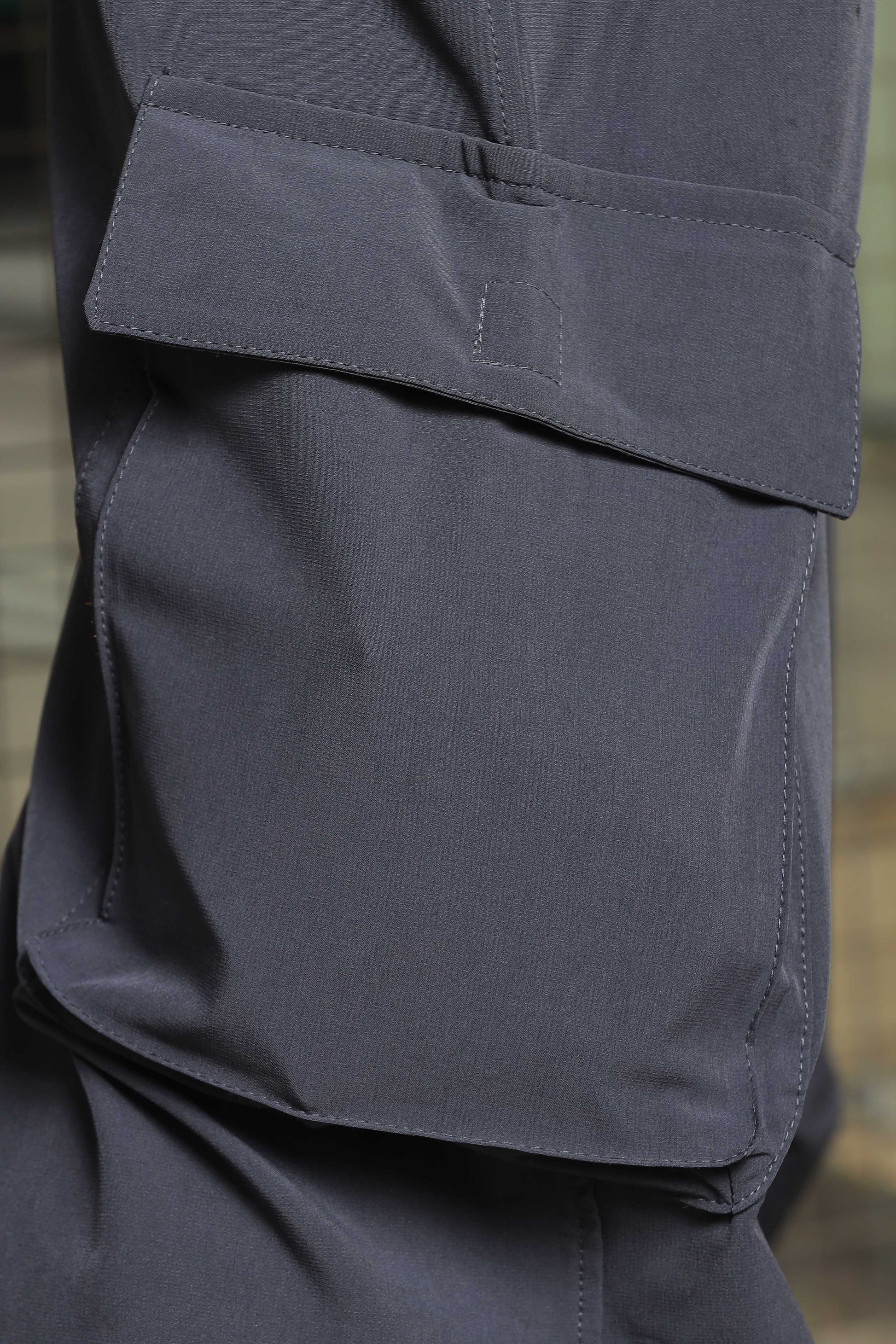 Unisex Baggy Fit Dark Grey Parachute Cargo Trousers