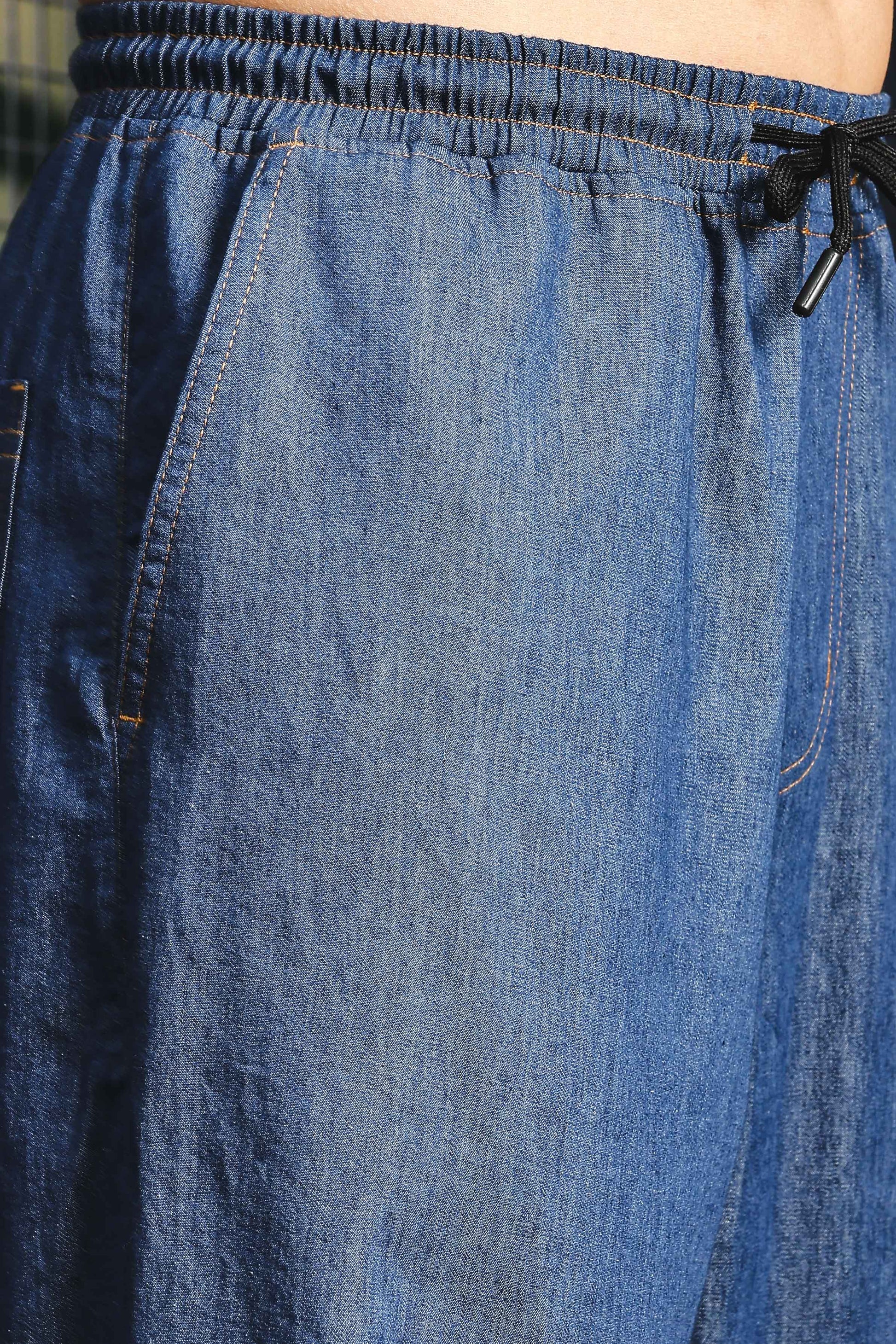 Unisex Blue Relaxed Fit Drawstring Denim Parachute Cargo