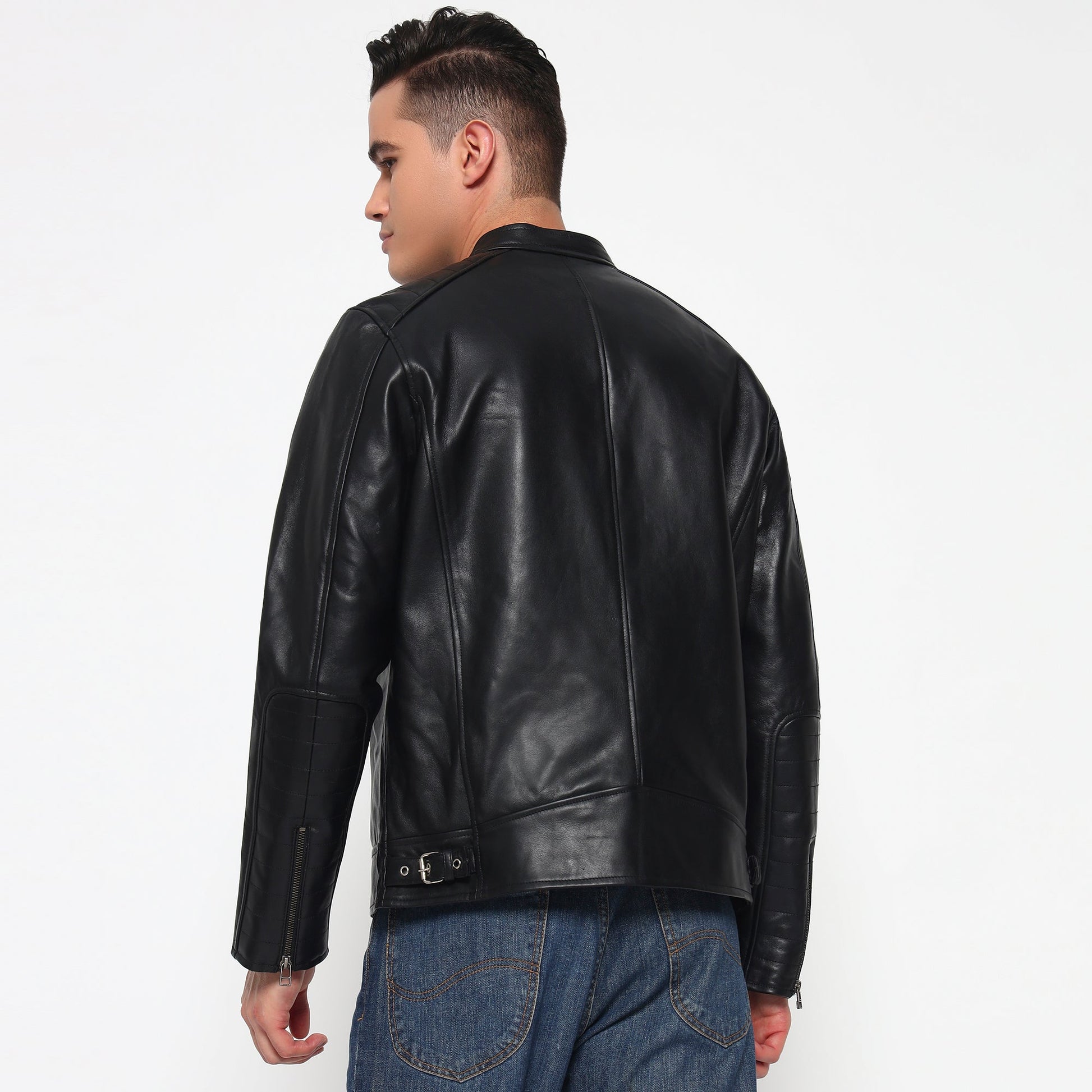 Define your style with the sharp, clean lines of our Urban Leather Jacket. Crafted from 100% genuine leather, this piece is a masterclass in modern minimalism sophistication. Its streamlined silhouette and understated details create a look that is effortlessly cool and endlessly versatile.