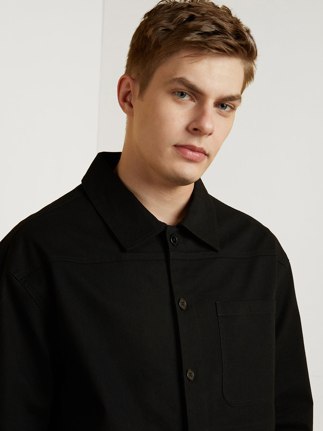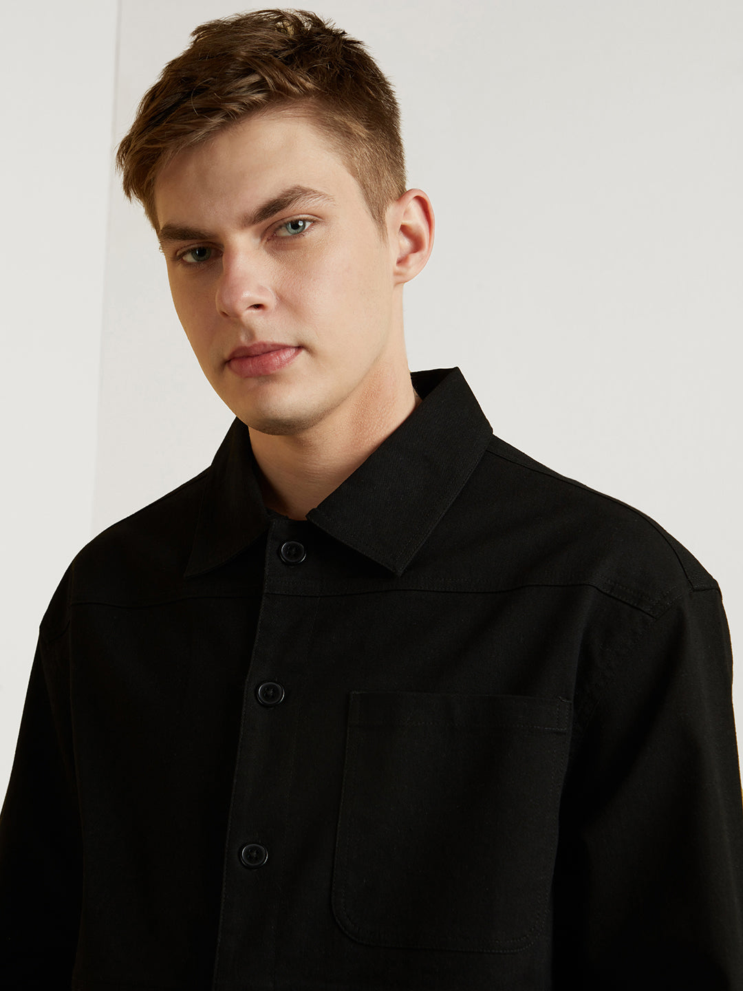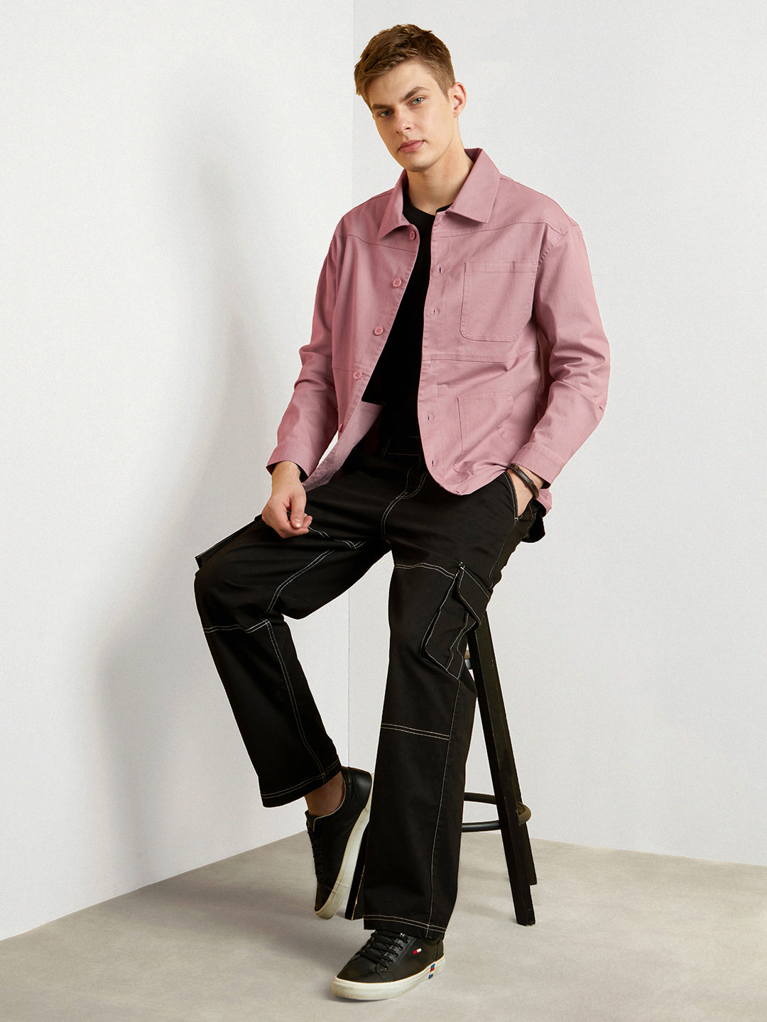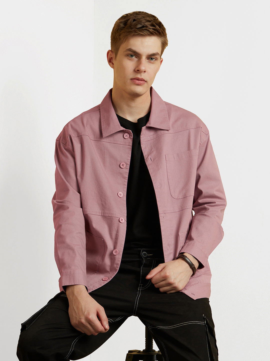 Styling: Complete your winter lookbook by pairing this cozy textured shacket with a trendy Nobero jogger and dainty accessories.