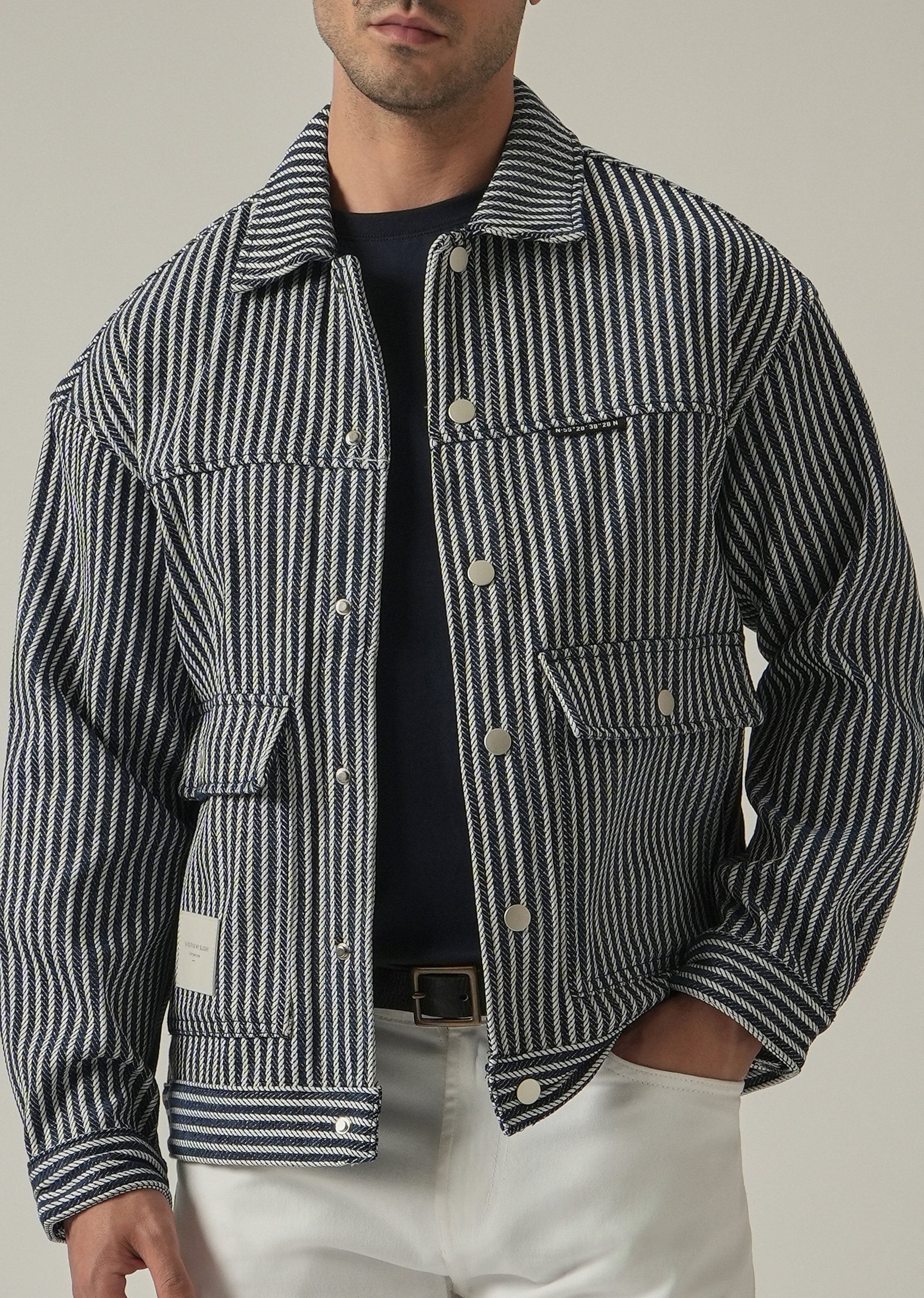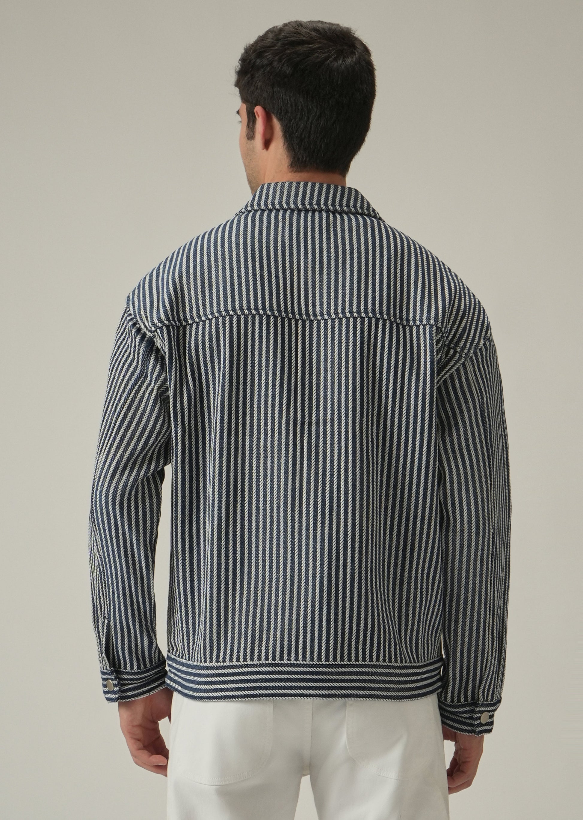Vertical Striped Denim Jacquard Jacket