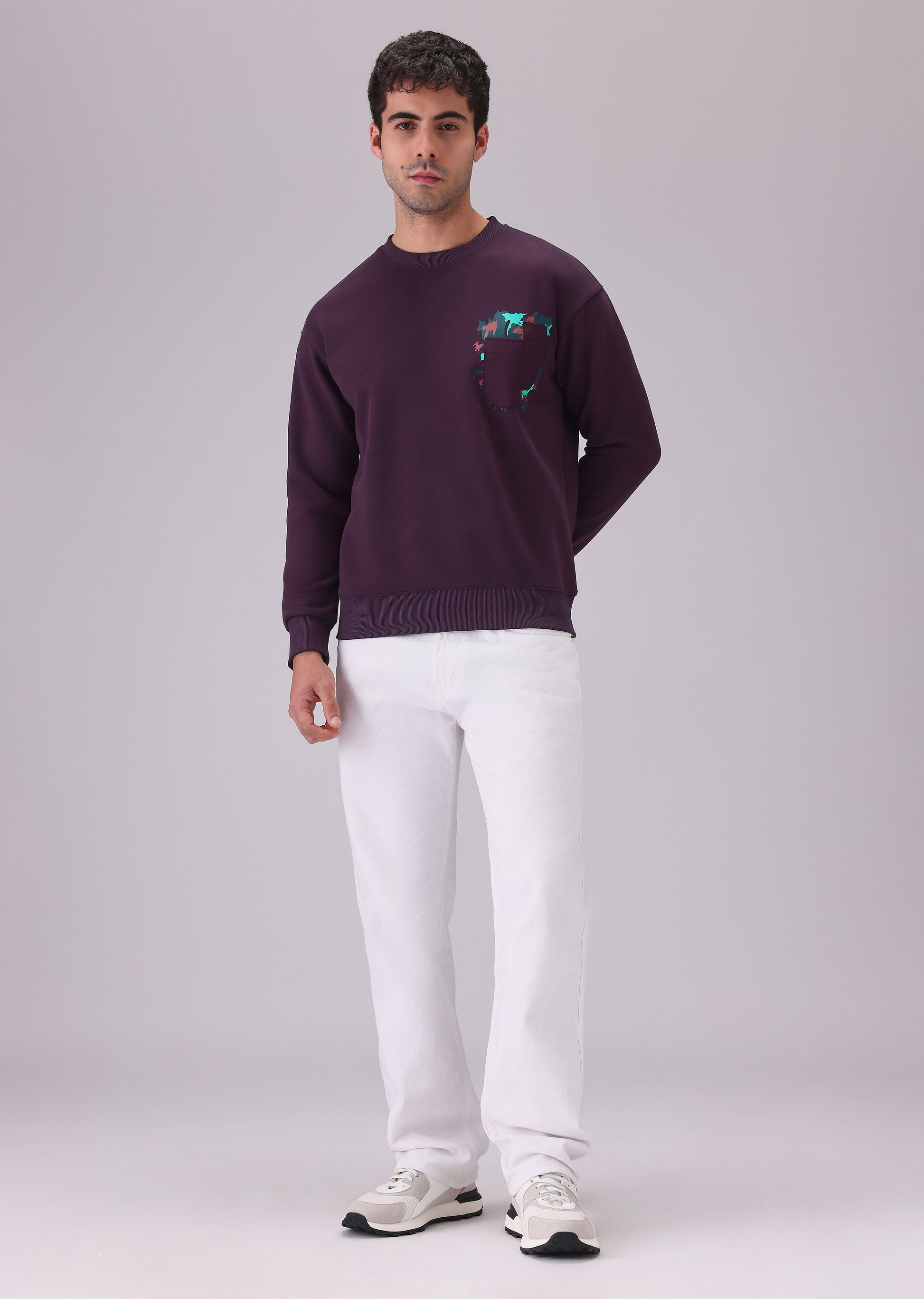 Crafted from soft cotton, this sweatshirt offers a sleek, slim fit with full sleeves for a comfortable, modern look. The classic crew neck adds a timeless touch, making it perfect for casual wear or layering.